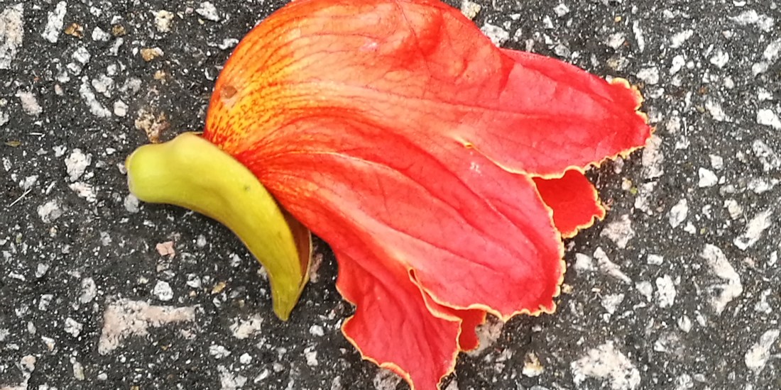 These incredibly vibrant red, orange and yellow blooms light up the tops of the African Tulip tree (spathodea campanulata 火焰樹) – abundant in Happy Valley, Tai Hang Road, Wan Chai, Quarry Bay, bordering IFC and many other places.