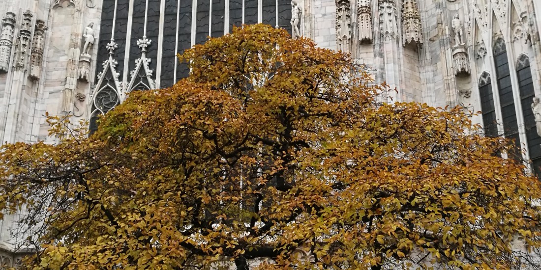There are two cherry trees (at least I think they are) planted at the back of the Duomo in Milan. Not sure who decided to put them there or why but they certainly add another element to the magnificent cathedral.