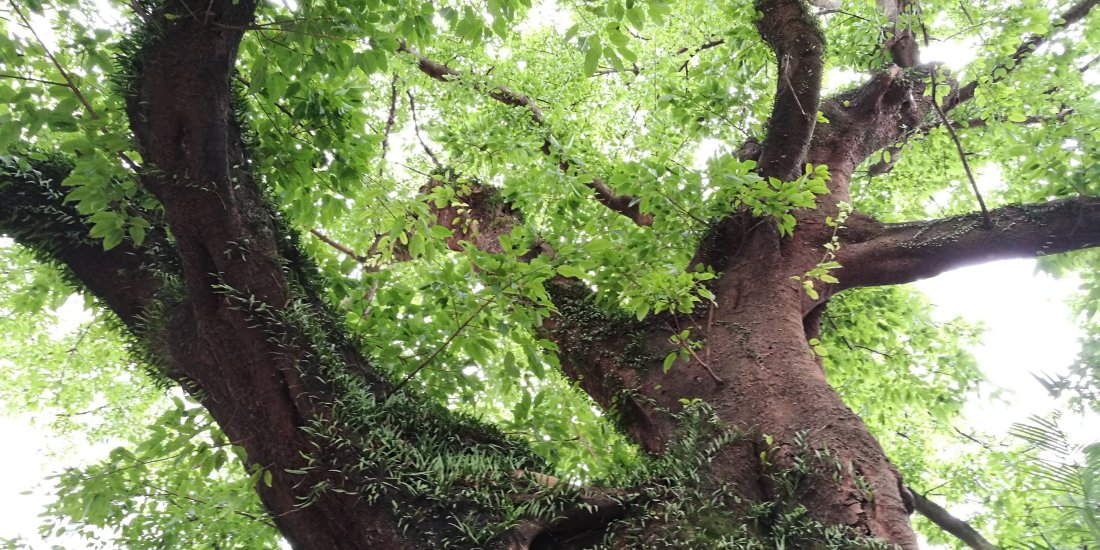 The tree, in June, is magnificent, with a full crowd of dense foliage, contrasted by its thick, twisting branches. It’s no surprise that it is a member of the venerable list of ‘Old and valuable’ tress of Hong Kong (LSCD CW/7). The tree has many distinguishing features, like its five massive limbs that spread out above its main trunk.