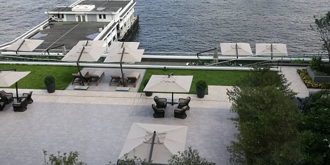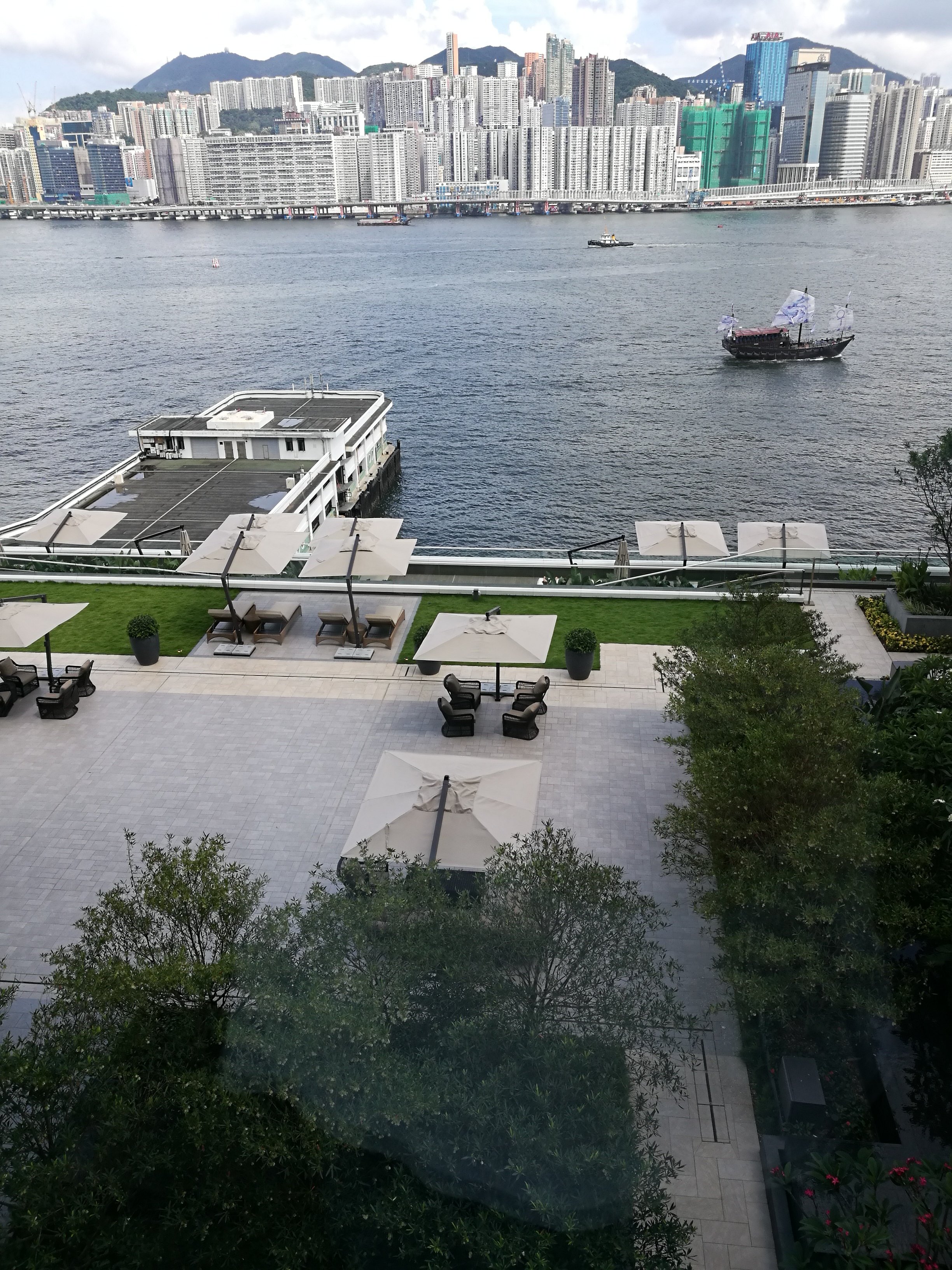A visit to the new Kerry Hotel in Hung Hom for lunch offered a great ocean view, complete with Chinese junk and a grove of flowering Hainan Elaeocarpus on the ocean front.