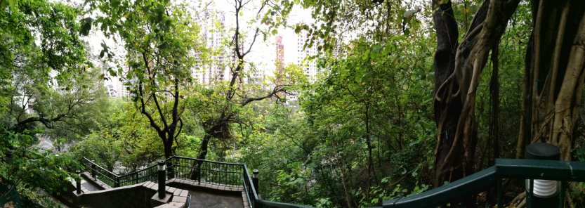 Your journey is not done yet, but it’s time to go back to the staircase and continue on your way. Right in front of you, guarding the bottom entrance of the stairs is a Camphor, not particular large or old, but covered in vines so it looks like its wearing a green sweater despite the Hong Kong heat.