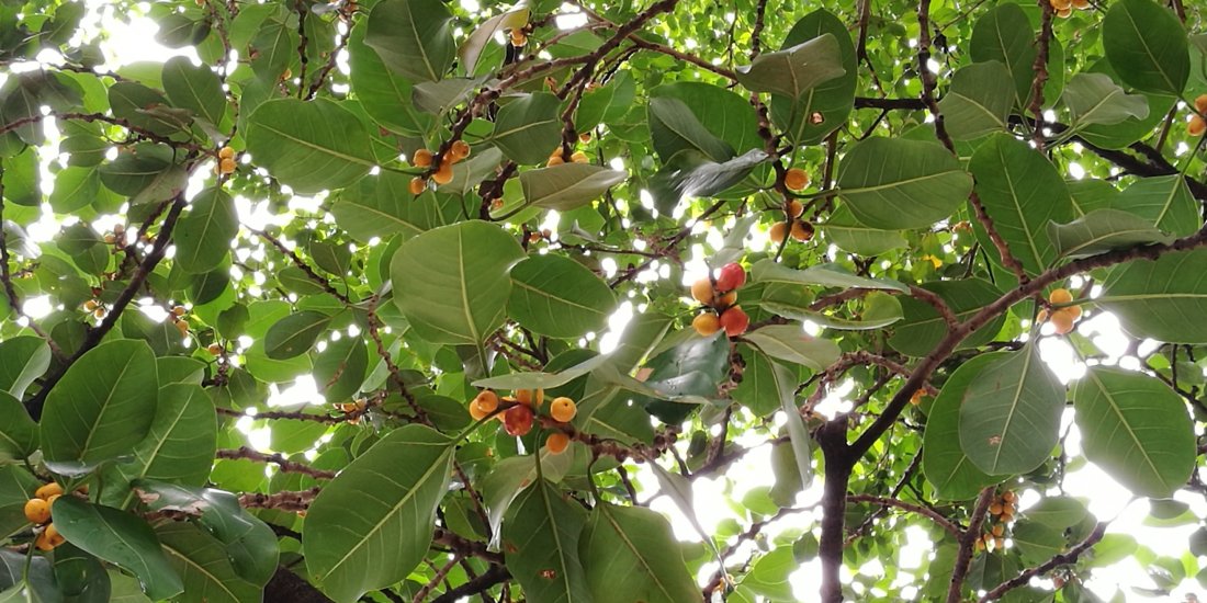 Growing amongst the branches and limbs are bright orange fruit that unmistakably identified this individual as a Weeping Fig (ficus benjamina).
