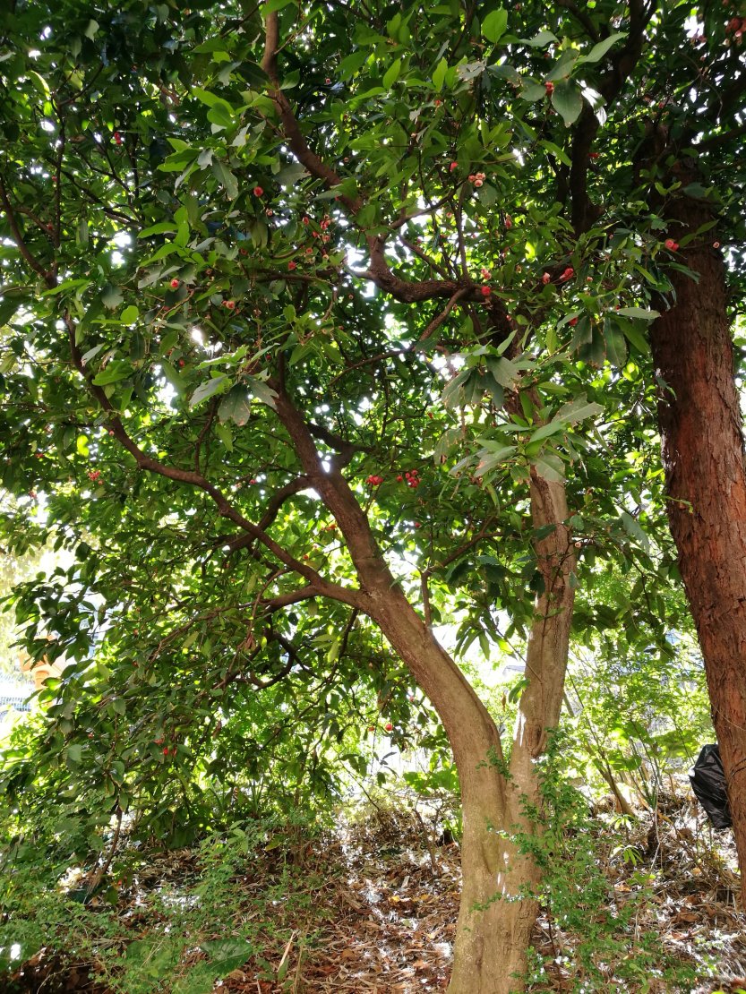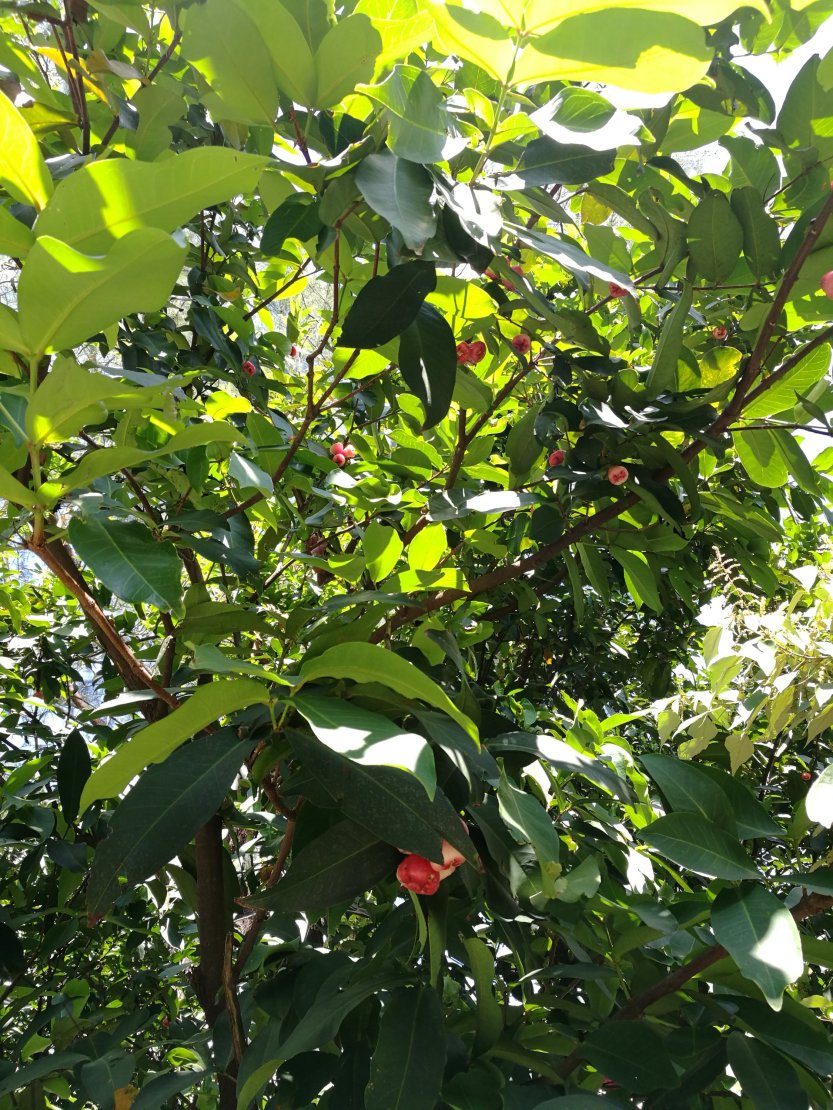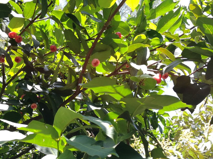 In this case, the height differential between Blue Pool Road and Green Lane in Happy Valley meant that the tops of a couple of Java Apple trees were at eye level, giving a perfect vantage point of their rose-coloured fruits.