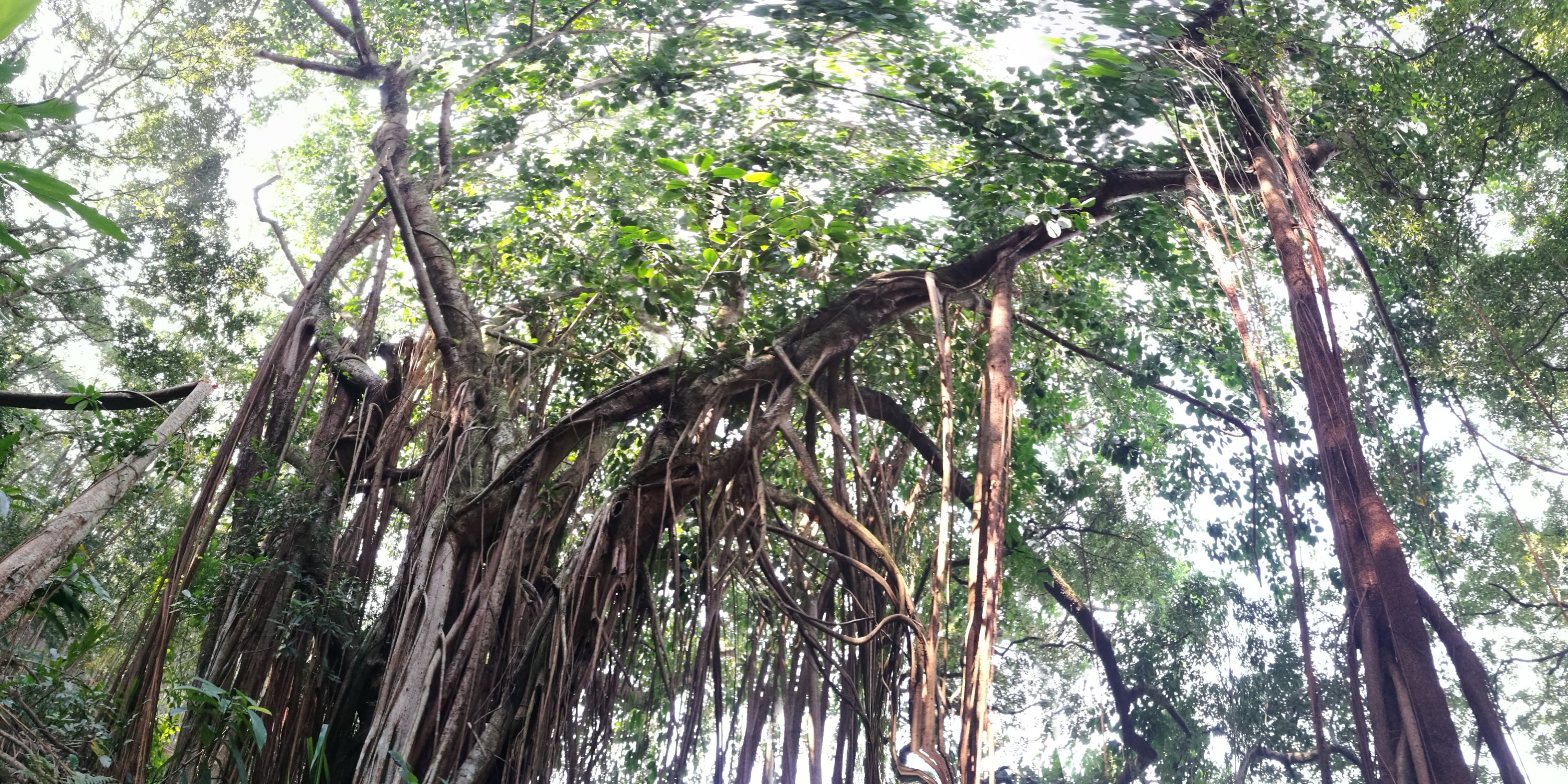 As you walk underneath its arches, you are also treated to its aerial roots, which hang overhead like party decorations.