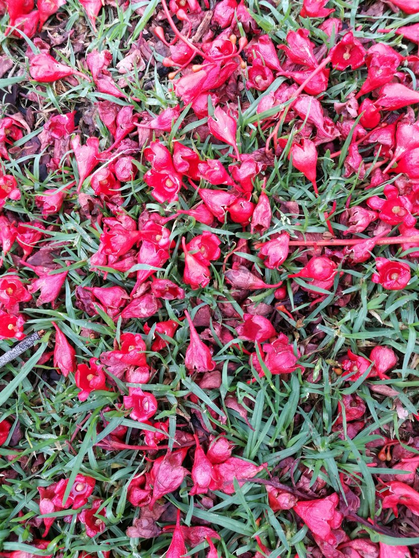 Hong Kong has lots of flame trees called delonix regia, but this was nothing like it. The flowers of the Illawarra Flame Tree (thanks to the Australian tree ID page from http://www.allcreativedesigns.com.au) are small and bell-shaped, unlike the delonix’s red petals. The leave of the tree were a bit of a mystery too as some there simple elongated while others were palmated with several finger-like parts.