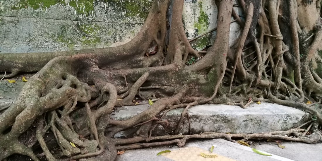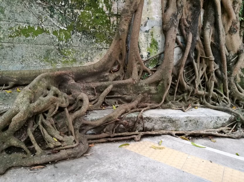 But what impressed me most about this tree are its roots, which form an elaborate pattern of growths that snake along the confines of its environment.