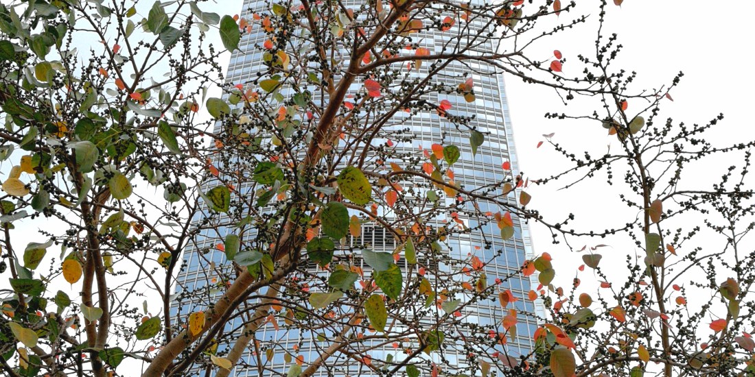 Here is an young, but delightful, Peepul Tree, aka Bodh Tree (ficus religiosa), fruiting and in the midst of transitioning its foliage to spring.