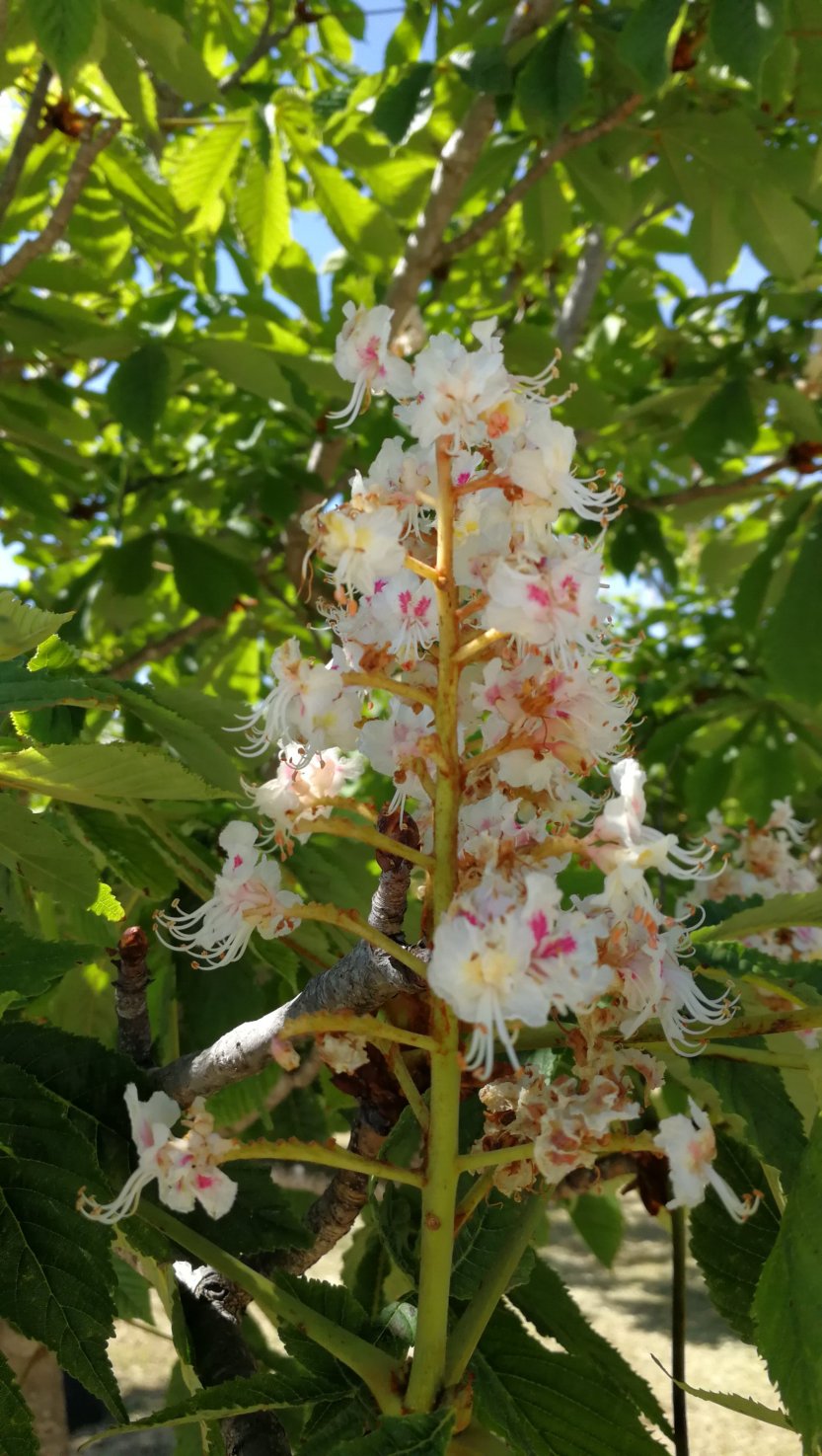 Having visited parks and gardens (and streets) in Europe in the past, I have had many encounters with the Horse Chestnut (aesculus hippocastanum), but always in the fall and winter months. Never in spring, when they are blooming. Until now.
