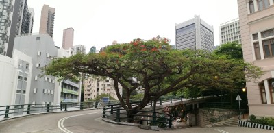 The home of this Flame tree could not be more appropriate for its natural form, which typically expands outward to form a wide canopy above a slender trunk